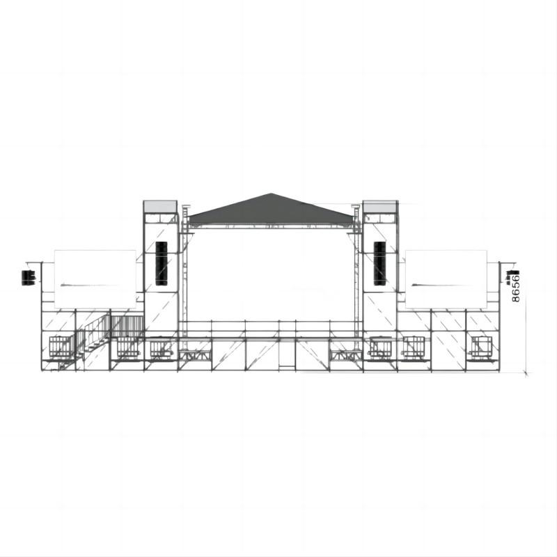 El sistema de andamios de aluminio Layher de 10 x 8 x 8 m es una estructura profesional de soporte para escenarios, diseñada para conciertos, eventos al aire libre y exposiciones. Fabricado con aleación de aluminio de alta resistencia, combina ligereza, portabilidad y una excepcional capacidad de carga.