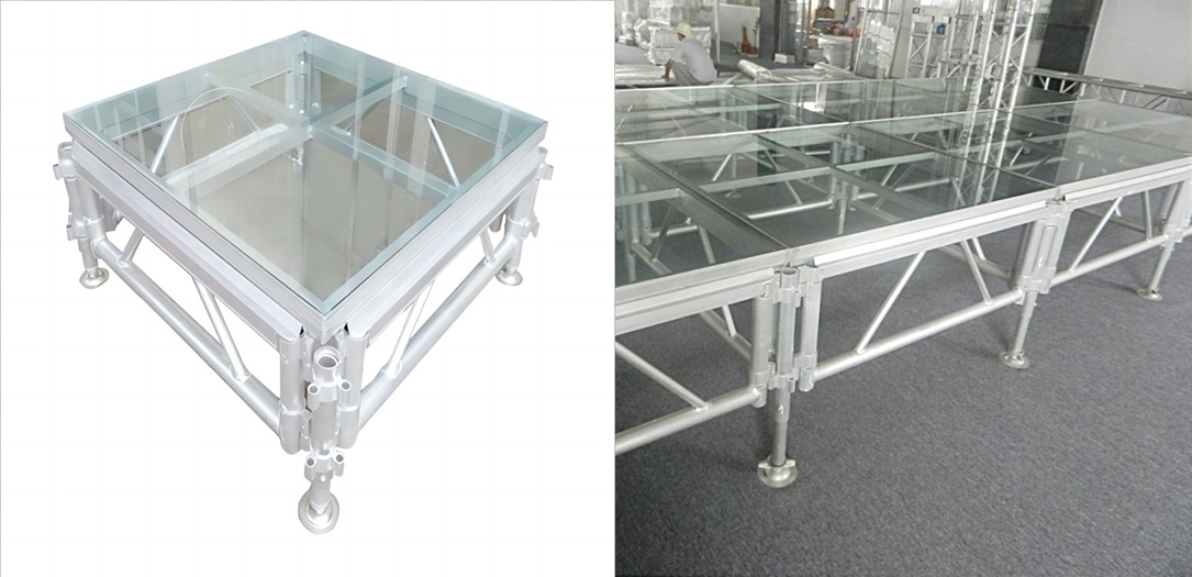 - El soporte estructural del escenario está proporcionado por un marco de aluminio duradero.